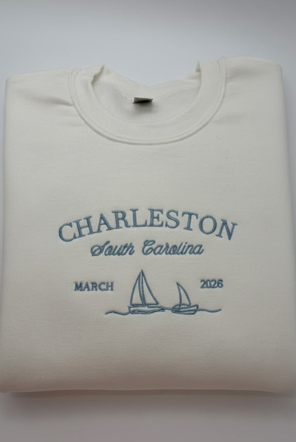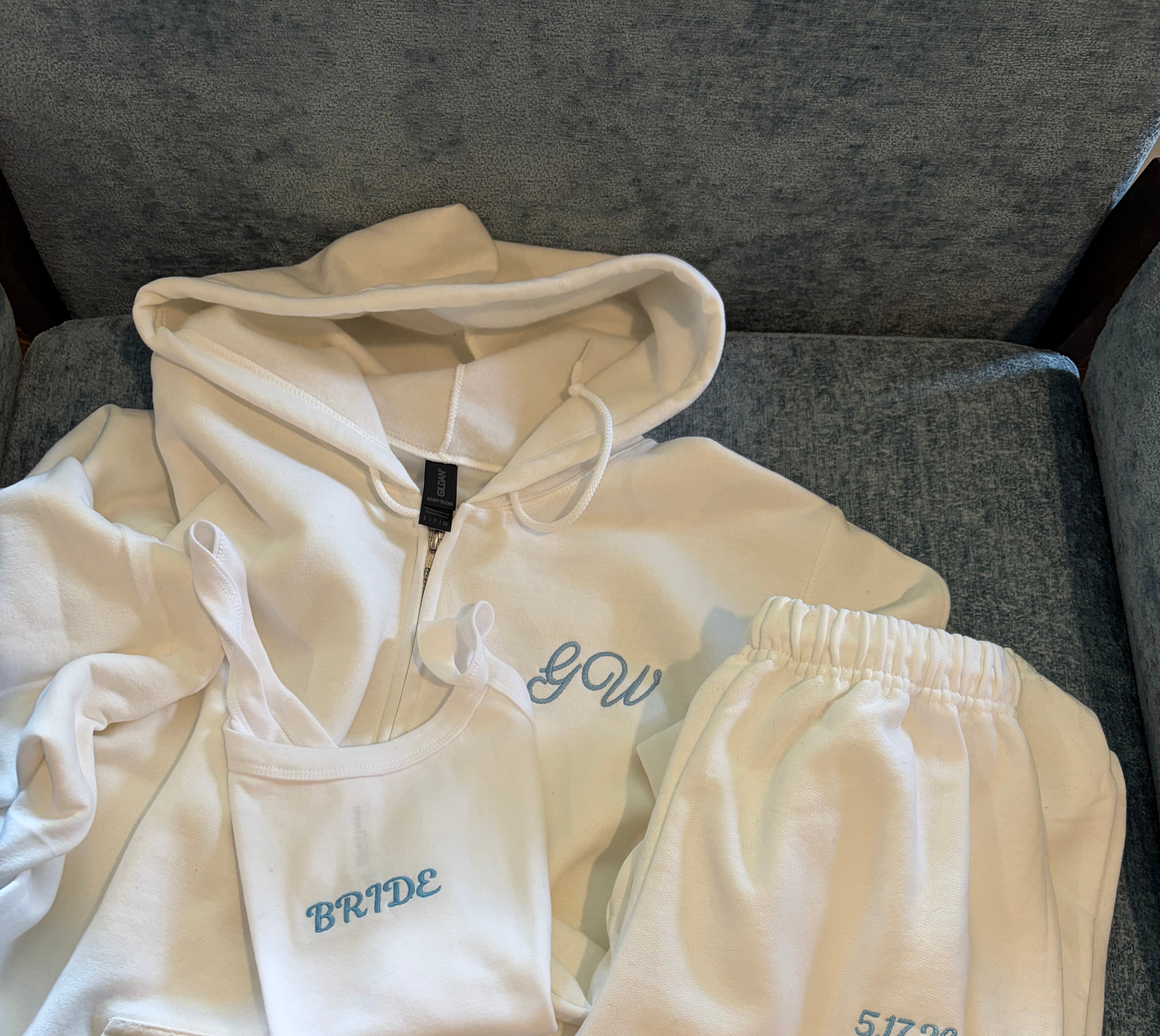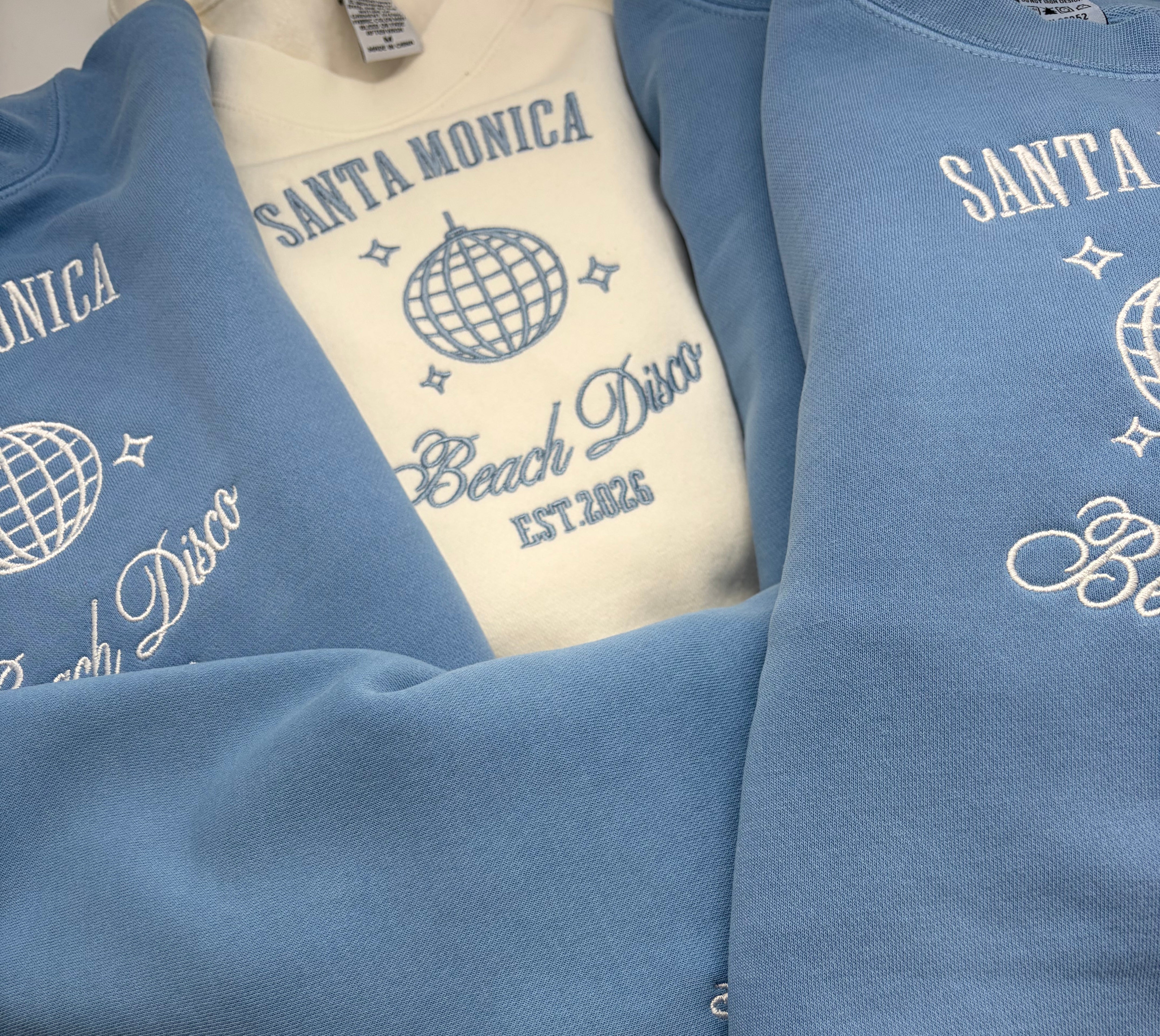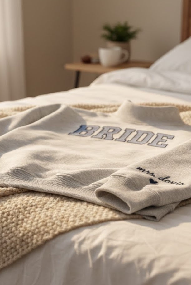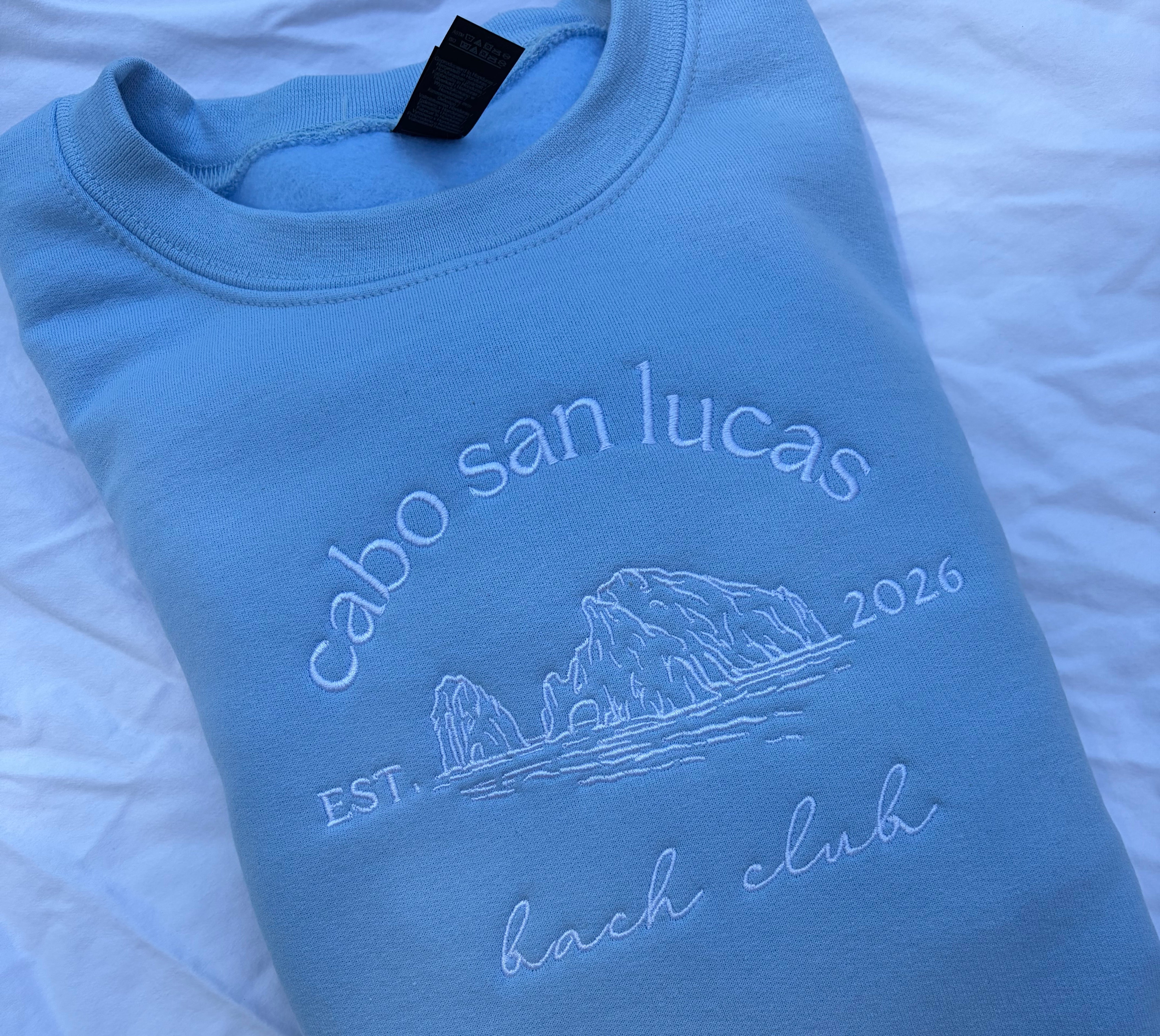Every custom bachelorette sweatshirt we make is thoughtfully designed, digitized, and embroidered by hand. From your initial inquiry to the final stitch, our process is collaborative and detail-driven—never mass-produced or printed.