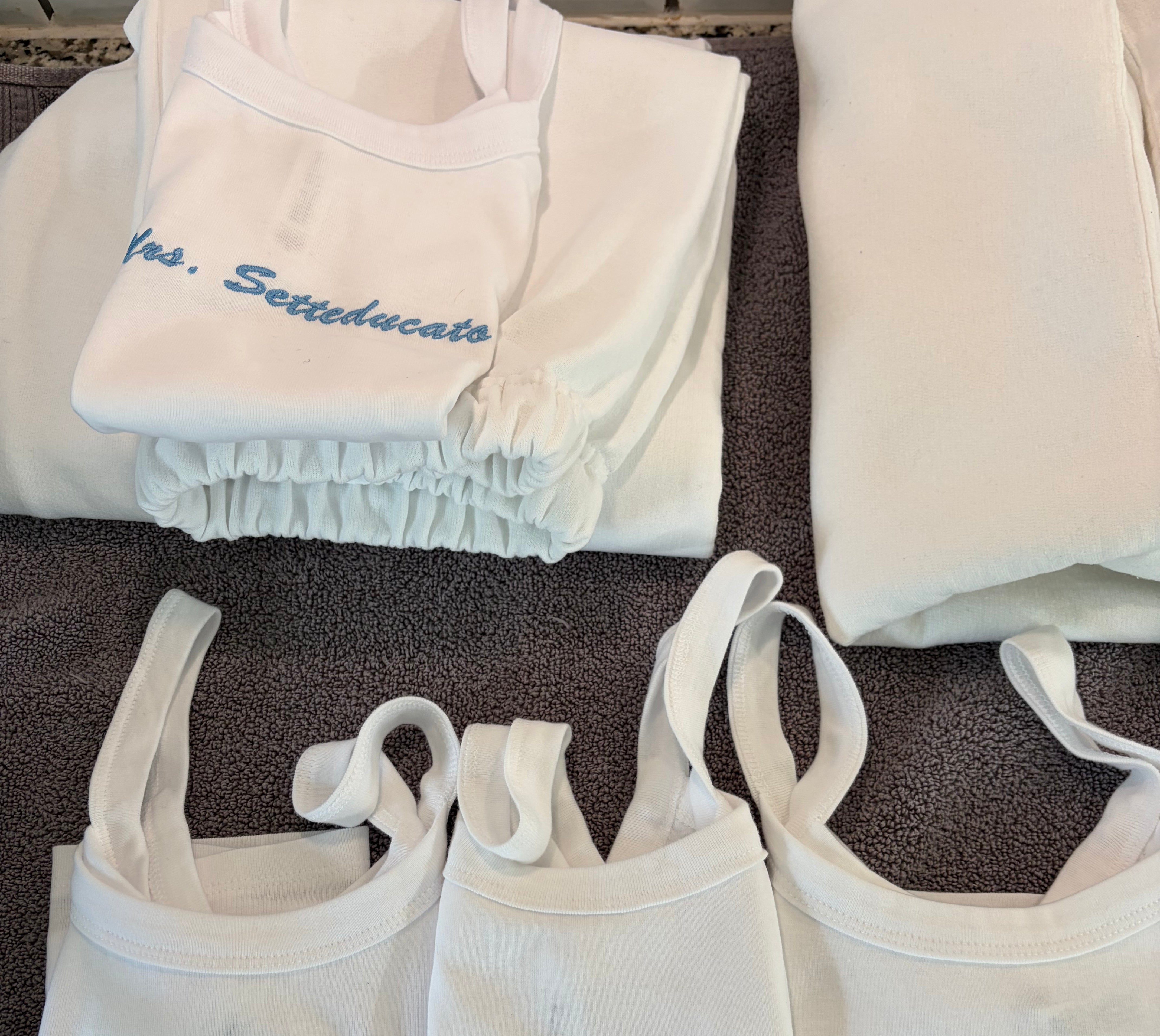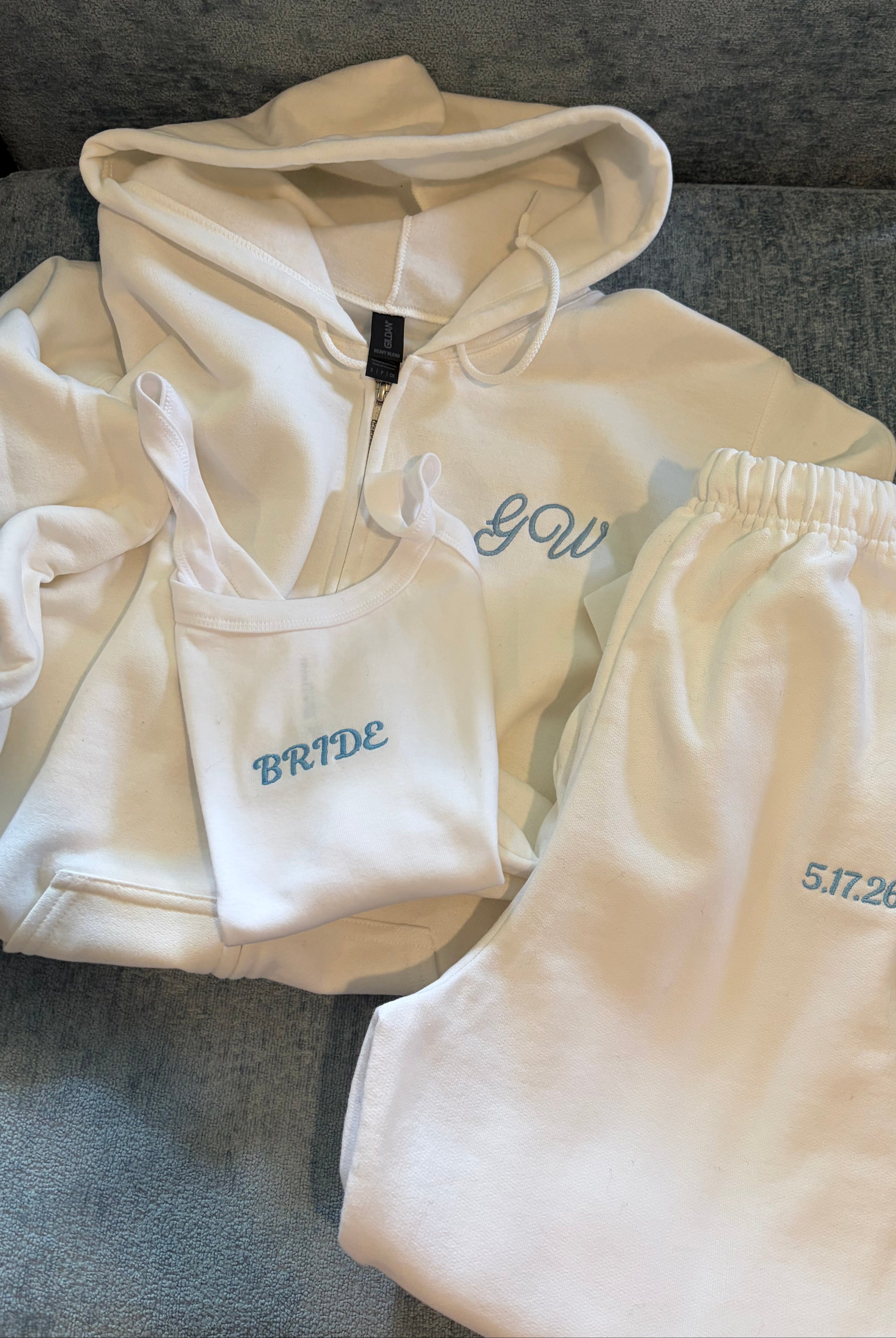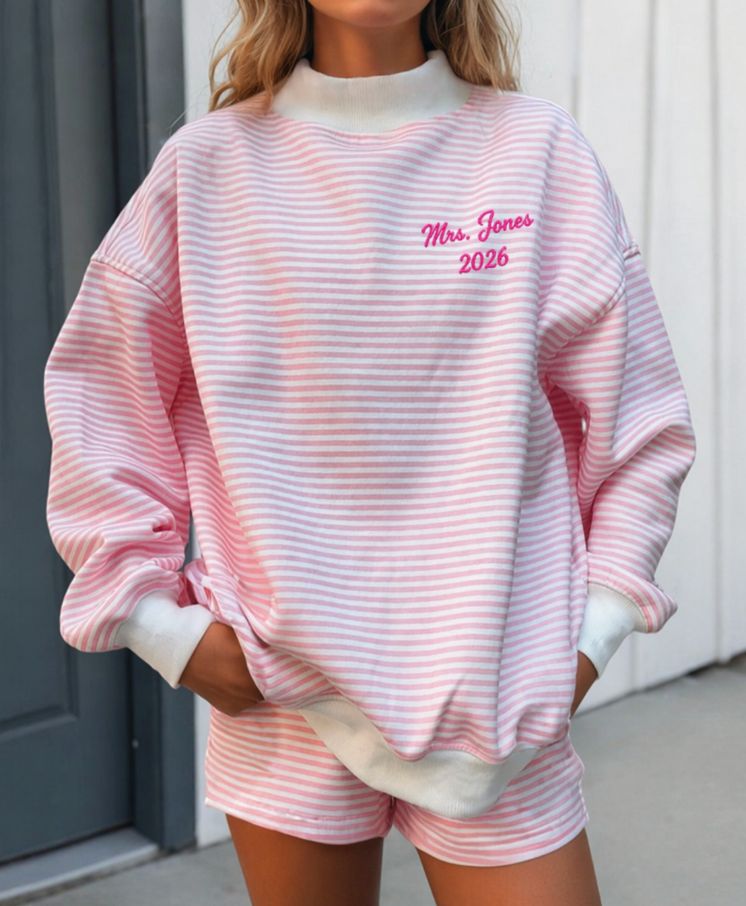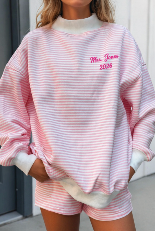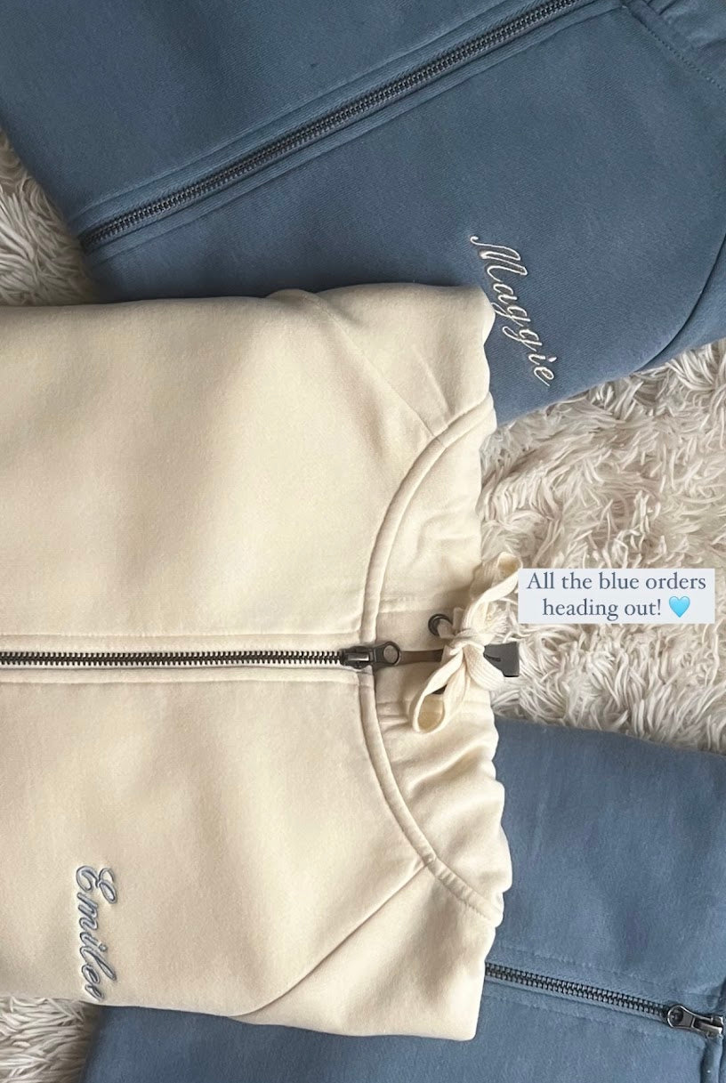 Every custom bachelorette sweatshirt we make is thoughtfully designed, digitized, and embroidered by hand. From your initial inquiry to the final stitch, our process is collaborative and detail-driven—never mass-produced or printed.
