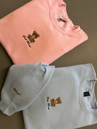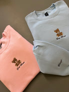 Meet the sweetest personalized sweatshirt — our Custom Teddy Bear Sweatshirt with your baby’s name stitched right in. Choose pink or blue, add your little one’s name under the teddy bear, and even include an optional cuff embroidery for an extra-special touch. Cozy, meaningful, and perfect for mamas, moms-to-be, or gifting something truly one-of-a-kind.