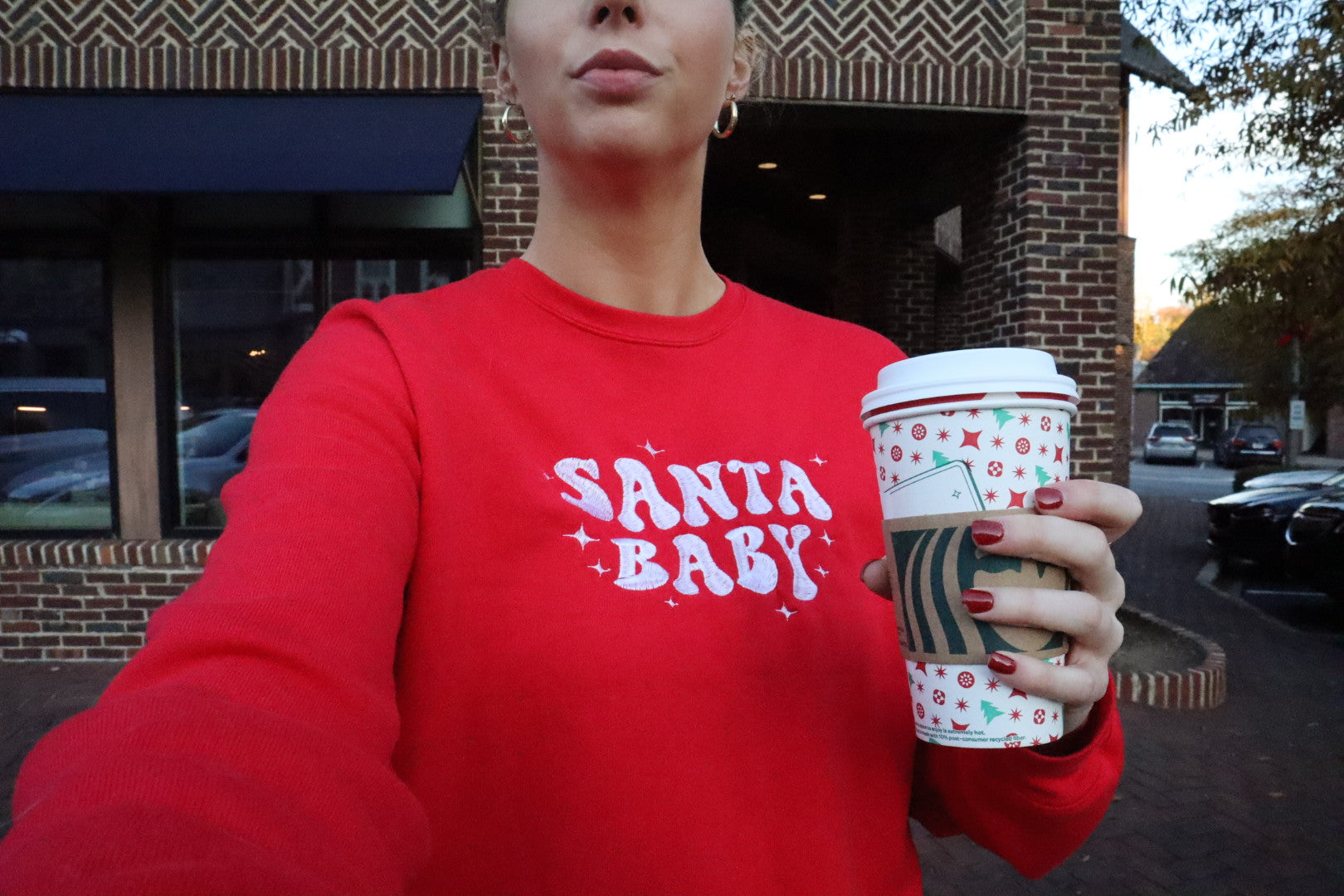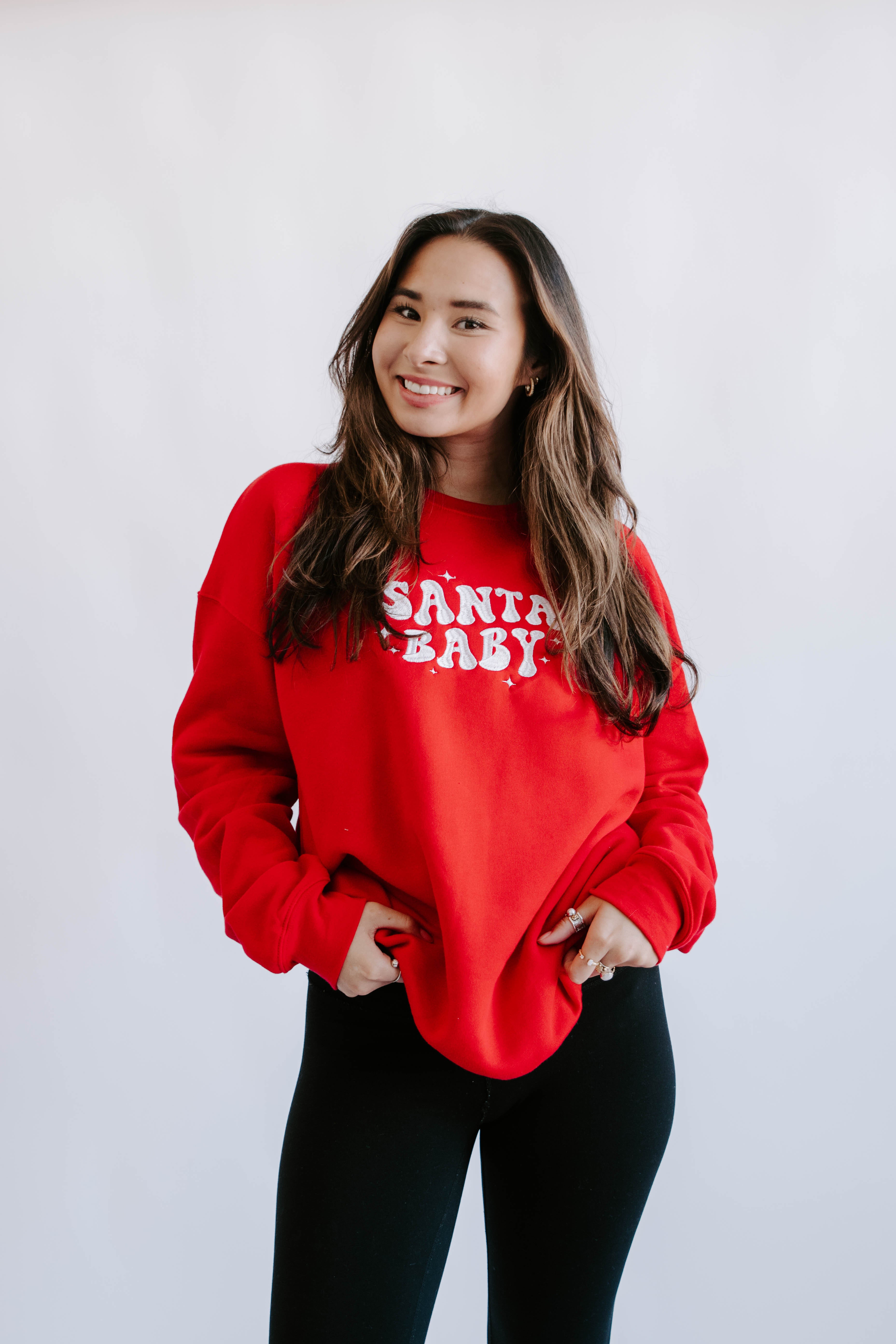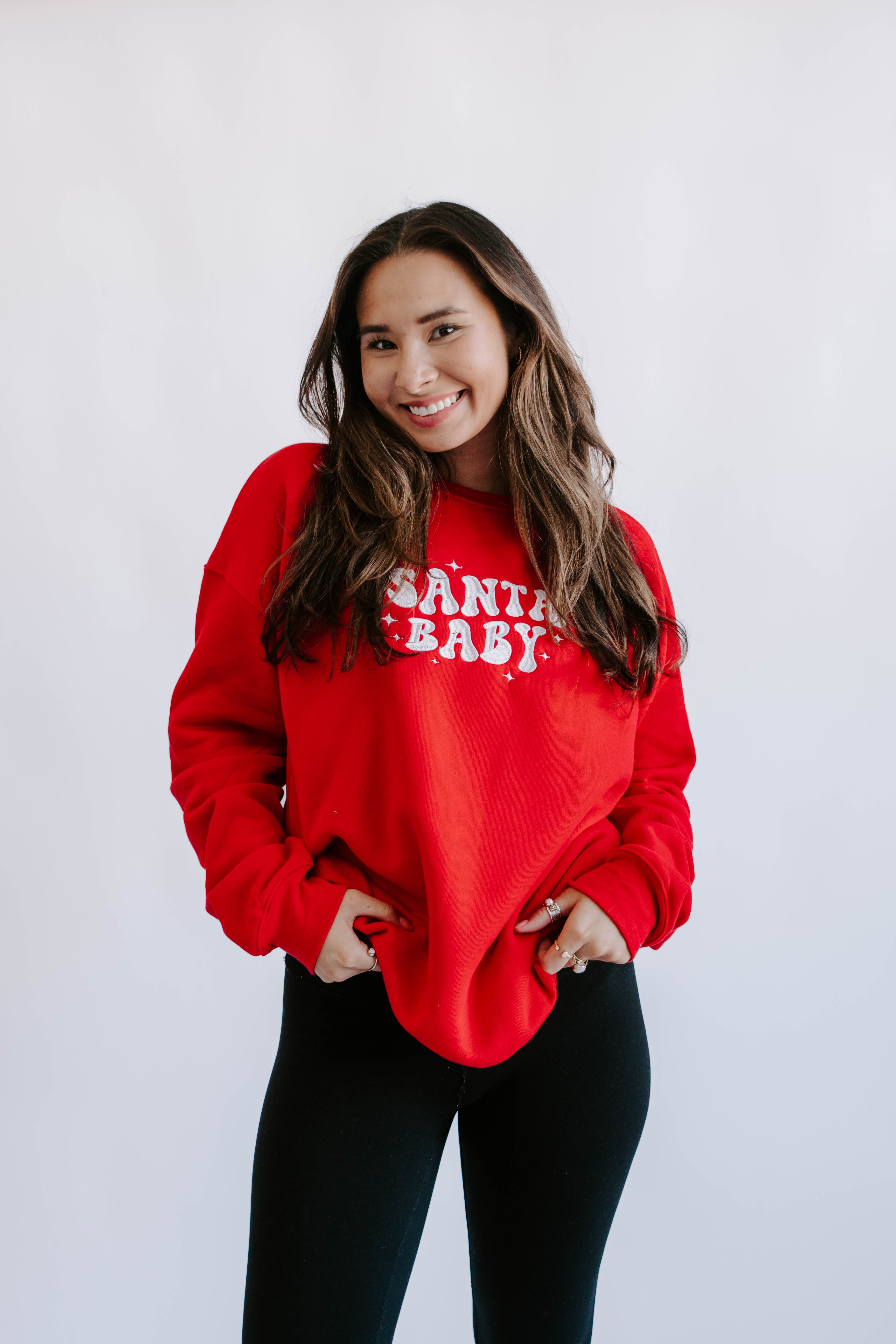 Festive, bold, and effortlessly cozy — this classic red embroidered sweatshirt is your new holiday staple. Featuring crisp white Santa Baby stitching, it’s the perfect mix of cute and Christmas chic. Whether you're decorating the tree, heading to a holiday party, or gifting something merry and fun, this sweatshirt brings all the cozy Christmas vibes.