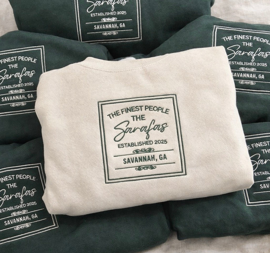 Elevate your wedding style with a personalized Wedding Logo Sweatshirt! Designed for brides, bridal parties, and loved ones, this elegant crewneck features your custom embroidery in a unique four-line design. Perfect for gifting or wearing during wedding festivities, this timeless piece blends comfort with meaningful personalization.