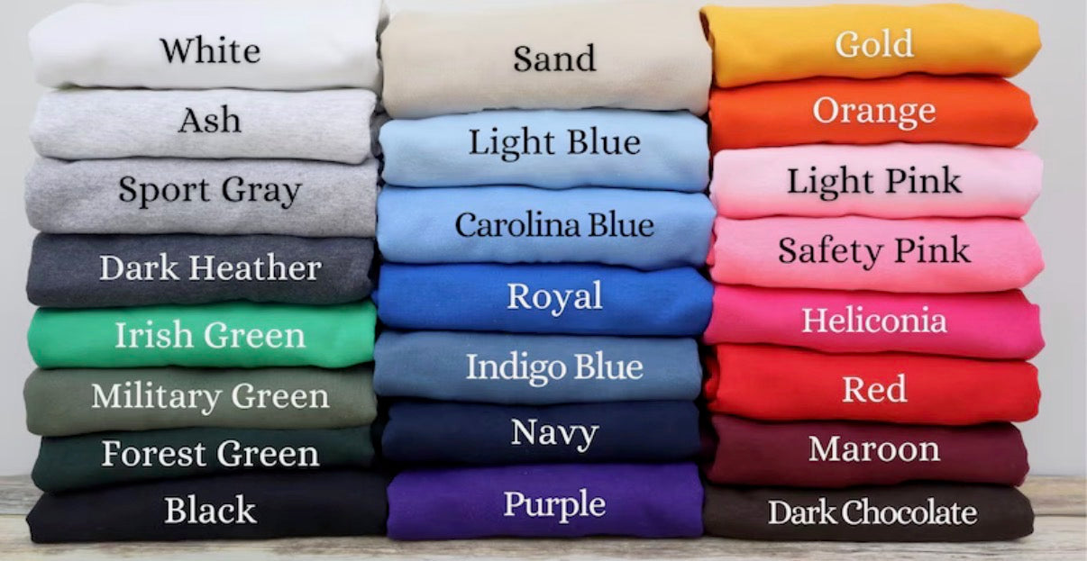 Sweatshirt colors — refer to the chart in photos